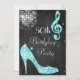 Convites Disco Ball and Heels Black & Turquoise 50th