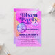 Convite de festas de esfera Disco da Retro 70's com bolas rosa-brilho e roxas sobre um fundo brilhante. ++++++++ Adequado para uma moderna tradição de celebração de aniversário retrô-tema.