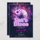 Ideias da festa de jardim de Disco: Abraça o espírito dos anos 70 com este modelo de convite de festas e ranhura que apresenta uma bola de disco com uma coroa floral e um fundo de estrelado, num esquema de cores roxo, lavanda e rosa quente. A escolha perfeita para adicionar um toque de elegância a uma comemoração de 30 anos de uma jovem que envolve dança, movimentos de groovy, uma festa de dança dos 70, uma festa de discoteca... em um restaurante de jardim, no quintal ou em qualquer lugar de jardim.