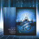 As luzes giram em torno de um gigante 'Sweet 16' neste convite atraente que também apresenta a silhueta escura de partidários e um pano de fundo de luzes brilhantes da discoteca. Esta cena noturna em tons de azul e preto também está disponível em uma variedade de outras cores para se adequar ao seu tema escolhido. Adicione os detalhes do evento no verso abaixo do fundo das luzes em cascata. Procure ID777 para ver outras opções de cores e produtos com este design.