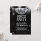 Retro 70s Disco Ball Party Invitation featuring a silver colored ball on a shiny black background. This design is suitable for a modern 70s retro themed birthday celebration.
