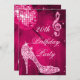 Convites de aniversário rosa-quente. Convites personalizados, elegantes e personalizados para comemoração de 20 festa de aniversário de mulheres com brilho e glamour. Os belos convites de aniversário, cor-de-rosa e branco-quentes, de vinte / vinte anos / vinte anos de idade, com uma bola de espelho retrodisco funky, imagens impressas glamourosas, tons de cinza, sequências, diamantes, joias brilhantes saltos altos e calçados de moda, e notas musicais brilhantes / notas musicais com brilho em um brilho rosa quente e faíscas menos fundo. Chic, clássico, fofo, giro, convites modernos para festas em tendências, cores / cores da moda. Estes groovy, rico, na moda, sofisticados, bonito, convites entre raparigas são decorados/impressos em ambos os lados. Convites perfeitos para um evento de dança jante. Pérolas e tapetes de renda por ©Hazel Kinvig-Paul www.design-a-dream.co.uk NOTA: todos os convites no Zazzle têm imagens impressas planas. Se precisar de assistência para personalizar seu produto, entre em contato comigo através da minha loja e eu ficarei feliz em ajudar.