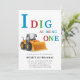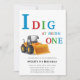 Eu cavo para ser um convite de primeiro aniversario em texto vibrante e colorido em azul vermelho e verde apresentando um digger em um fundo branco ideal para um aniversário de meninos digger. um design simples, simplista mas moderno, disponível também para downloads instantâneos. se você quiser outras idades, por favor, entre em contato comigo através da minha loja zazzle e ficará feliz em ajudá-lo.