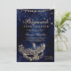 Um doce moderno, chico e glamouroso dezesseis com uma máscara de mascarada com brilho dourado desenhado à mão com faíscas de diamante brilhante rosa de ouro sobre um fundo azul-marinho escuro.
