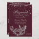 Um doce moderno, chico e glamouroso dezesseis com uma máscara de mascarada relâmpago prateada desenhada pela mão com faíscas de diamante reluzente prateado em um burlhão vermelho escuro