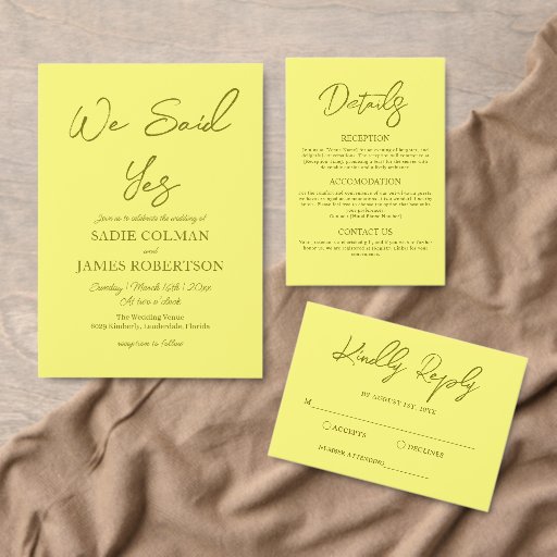 Convites Dissemos Sim Casamento Amarelo Manteiga Minimalist