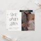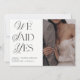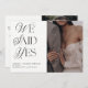 Nosso melhor anúncio de casamento ganha um upgrade elegante! Este anúncio de casamento branco e preto chico é uma forma excelente de deixar seus amigos e família saberem que você fugiu, teve uma cerimônia secreta, ou um casamento particular, e desejar comemorar com eles! A frente do cartão é projetada para mostrar sua foto de orientação vertical favorita, com as palavras 'Nós dissemos sim' à esquerda em uma revista de moda preta, eterno e elegante + tipografia de script. A parte traseira do cartão permite digitar informações pessoais sobre o casamento, além de incluir informações sobre o convite de recepção, e apresenta uma segunda foto de casamento de orientação vertical, e um código QR para o seu site. Este é um design de modelo e é muito fácil de personalizar para atender às suas necessidades. Entre em contato com o designer para produtos correspondentes. Copyright Anastasia Surridge, todos os direitos reservados.