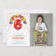 Estes convites de festas de aniversários bonitos e alegres apresentam um balão vermelho número 6, balões coloridos e confete com uma foto da sua escolha. Personalize os convites de festa de aniversário adicionando o nome, a idade e os detalhes da festa do seu filho.