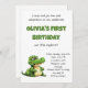 Mergulhe no entusiasmo do nosso primeiro aniversario! O nosso convite temático verde, com um jovem crocodilo lúdico, convida-vos a um safari selvagem da selva. Junte-se a nós para uma aventura emocionante sob o sol!