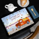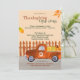 Convide seus amigos e família para uma Casa Aberta FUN de Ação de Graças ou outro evento com este design de feriado festivo e divertido personalizado apresenta um caminhão laranja rústico e tendencioso cheio de abóboras festivas e seu monograma inicial na porta. A parte traseira do cartão apresenta a frente do mesmo caminhão de colheita. Clássico e contemporâneo, moderno e festivo, este convite de Ação de Graças é fácil de personalizar com seu próprio nome, endereço e informações de partido. Design por T.K. em frente