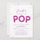 Diversão, tendências e convite para chás de fraldas na moda com bonito letras de balão soletrando "'Name' está prestes a Pop", caligrafia moderna e estrelas rosa, roxas e douradas, lúcidas e lúcidas. Sinta-se à vontade para entrar em contato comigo através da loja com quaisquer perguntas ou solicitações relacionadas ao design.