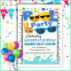 Este é um incrível convite de aniversário para piscinas. O design é cheio de detalhes divertidos e brincalhões, incluindo rostos felizes que soletram "PISCINA" e imagens de cerveja, hambúrgueres e óculos de sol. É a maneira perfeita de convidar seus amigos a se juntarem à diversão.