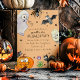 "Prepare-se para um momento assustadoramente bom com nossos convites de festa de Halloween espetaculares! Com um modelo de convite fácil de personalizar, esses convites fofos certamente criarão o clima sombrio. O design apresenta ícones animados, como morcegos, abóboras, sapos, fantasmas, aranhas e mais para um toque assustadoramente divertido. Não perca essa celebração diabolicamente maravilhosa – responda agora!"