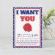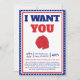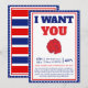 Celebre o Dia da Independência com estilo com o nosso "Eu Quero que Você Venha à Minha Festa Convite"! Este convite patriótico captura o espírito do dia 4 de julho com seu vibrante design vermelho, branco e azul. Perfeito para a sua festa de 4 de julho, este cartão inspirado no vintage define o tom para uma celebração cheia de diversão. Com o icônico motivo "Eu Quero que Você", ele convida seus convidados a se juntarem às festividades.