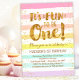 Que graça é ser um! Celebre o primeiro aniversario do arco-íris feminino com listras pastel e o coração de confete de ouro no primeiro aniversário.