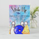 Diversão "Divirtam-se", Tema de Cor Azul, Convite de Festa para Rapazes. Este convite é apresentado sobre um impressionante fundo azul com efeito tie dye. Ele usa um tema retrô vibrante e colorido com uma paleta de cores da moda. Personagens de desenho animado kawaii de boliche acentuam a diversão!