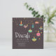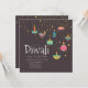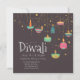 Design Festivo Diwali com cores sutis e uma doce ilustração de profundezas penduradas, luzes cintilantes e estrelas.