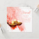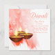 Design elegante com três diyas como fundo de aquarela vermelha para Diwali.