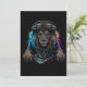 um animal vestindo fones de ouvido e segurando mixer musical, cara de leão de perto