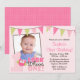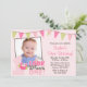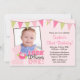 Convites de festas temáticos do primeiro aniversario da coruja bonito. Um design doce em cor-de-rosa, em verde e em marrom para um primeiro aniversário da menina. Adicione uma foto para fazer isto convidar o special. Alguns gráficos por www.jwillustrations.com