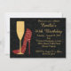 Este convite sofisticado caracteriza um vidro do champanhe do ouro com uns calçados vermelhos do salto alto do estilete. O fundo é preto com um watermark floral do damasco dar-lhe a textura. Personalize este convite com os detalhes de seu partido. A parte traseira tem a abundância do espaço para a informação. Eu criei este convido com aniversários na mente, igualmente trabalha igualmente bem para a noite de uma menina para fora ou o partido de solteiro. Eu igualmente mando este convidar em uma variedade de esquemas de cores. Se você não encontra o que você está procurando mas gosta do design, apenas mensagem mim com seu pedido.