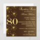 Seus convidados amarão este personalizados, o ouro e o convite de aniversário marrom do 80 da reunião sparkling com estrelas de brilho. Simples contudo festivo, o IS-IS elegante, chique, clássico, elegante do convite de aniversário do 80 uma maneira apropriada de comemorar seu convidado do aniversário octogésimo de honra com estilo que é tradicional com uma sugestão do estilo moderno, contemporâneo. Você personaliza facilmente este convite de aniversário do 80 da surpresa enchendo nos modelos dados. os aniversários do 80 são significados ser comemorados. Porque não se certificar de você enviar o 60th convite de aniversário perfeito, perfeito para homens ou mulheres, a seus convidados. Este convite de aniversário é perfeito para o anfitrião ou a hospedeira consciente do orçamento. Não esqueça o obrigado de harmonização você notas!