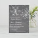 Um convite bonito do casamento do floco de neve do quadro com os dois flocos de neve bonito com uma folha e um design floral e máscaras bonito do coração cinzento deu forma a reflexões da neve e do gelo atrás dele. Aperfeiçoe para um país das maravilhas do inverno ou um casamento temático do Natal. © Chrissy H. Estúdio dos trabalhos de arte, LLC. Todos os direitos reservados.