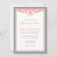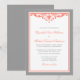Um convite formal do casamento que caracteriza um redemoinho elegante do flourish. Mostrado nas cinzas e no coral.