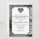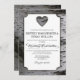 Convites do casamento do latido de árvore do vidoeiro do coração do entalhe - características uma caixa de texto branca sobre um fundo do latido de árvore do vidoeiro. A parte traseira caracteriza o mesmo fundo do latido de vidoeiro. Os textos caracterizam uma mistura ou umas pias batismais elegantes do roteiro e as padrão em cores pretas e cinzentas.