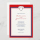 Convites feitos sob encomenda do casamento do tema do basball, com um basebol dado forma coração, e uma beira vermelha e azul.
