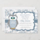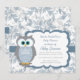 Tenha um chá de fraldas do menino vir acima? Wow suas procuras com este convite azul e cinzento bonito super do chá de fraldas da coruja