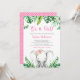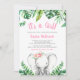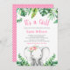 Design adorável do convite do chá de fraldas do elefante da menina que caracteriza as folhas da aguarela e o elefante tropicais do bebê.