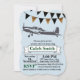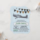 Um chá de fraldas temático do menino do avião à moda convida. Aperfeiçoe para um tema do chá de fraldas da aviação. Características de design uma luz - fundo azul, uma bandeira do avião do vintage e da estamenha no preto e no ouro.