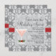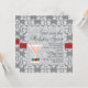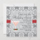 Receba o espírito do feriado com estes em convites bonito do Natal e do cocktail do feriado com um vidro de martini, um bastão de doces e um sprig cor-de-rosa do azevinho com uma beira cinzenta e branca do damasco e contraste vermelho um design costurado da fita. © Chrissy H. Estúdio dos trabalhos de arte, LLC. Todos os direitos reservados.