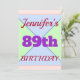 As características deste design do convite de aniversário do divertimento uma mensagem gostam de "ANIVERSÁRIO Jennifer do 89th", onde o número do nome e do aniversário pode ser personalizado. Igualmente caracteriza um colorido, divertimento, fundo geometria-inspirado. Os detalhes do evento na parte traseira podem ser personalizados. Poderia ser usada para convidar pessoas a alguém nona celebração ou festa de aniversário do aniversário oitenta. [~Z0000311]