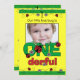 Os convites feitos sob encomenda do primeiro aniversario do joaninha de ONEderful comemoram o primeiro aniversário do bebê muito com estes convites frente e verso adoráveis. A parte dianteira tem a beira do joaninha, quadro da foto para adicionar seus próprios imagem e texto vermelho e verde bonito que diz ONEderful. O texto customizável sobre de volta a adiciona seus próprios detalhes do partido. Mude a cor e as pias batismais do fundo apenas a maneira que você gosta d. Selos postais coordenados e presentes do bebê também disponíveis. Original de PinkInkArt!