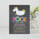 convite de festas flutuante de piscina divertida, incluindo um flutuador unicórnio. impressão incluído.