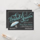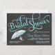 Chás de panela do quadro -- Swirly caligrafia elegante do swoosh no quadro-negro das cinzas de ardósia com o guarda-chuva feminino bonito e as flores abstratas. Apenas adicione o nome Noiva-à-Estar, da data, de tempo e de detalhes, e personalize a informação nupcial do registro. O clique personaliza-a para mudar o tamanho, o estilo, as pias batismais, a cor e a disposição para criar seus próprios convites disponíveis do chá de casamento.