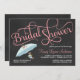Chás de panela do quadro -- Swirly caligrafia elegante do swoosh no quadro-negro das cinzas de ardósia com o guarda-chuva feminino bonito e as flores abstratas. Apenas adicione o nome Noiva-à-Estar, da data, de tempo e de detalhes, e personalize a informação nupcial do registro. O clique personaliza-a para mudar o tamanho, o estilo, as pias batismais, a cor e a disposição para criar seus próprios convites disponíveis do chá de casamento.