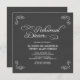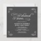 Convites de festas rústicos do jantar de ensaio do pre-casamento do conselho de giz. Convites de casamento tipográficos do quadro -- Swirly, rolos encaracolado cria um quadro rústico simples no quadro-negro das cinzas de ardósia. Adicione os nomes e a informação wedding neste modelo fácil de usar. O estilo quadrado do convite do conselho de giz é perfeito para casamentos modernos na moda com um toque do divertimento de encanto sofisticado para os noivos tradicionais. Preços disponíveis para noivas em um orçamento. NOTA: Este design de produto setup para cartões quadrados somente, que exige o porte postal extra.