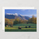 Vocês podem ver três estações nesta fotografia. Inverno na montanha, queda nas árvores e verão na grama verde.