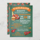 Diversão do chá de futebol para um chá, chá de fraldas ou chá de panela de casal. Apresenta um futebol, hambúrguer, cerveja, dedo espumante e buzina com sinais direcionais de quadro chanfrado em um fundo verde de quadro chanfrado. Ilustração desenhada à mão por McBooboos
