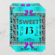 Convites Doce 13 Festa de Diversão Zebra Teal Blue Roxo
