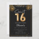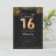 Doce 16 Sexto Balão de Aniversário com folhas tropicais ouros Convite de festas Adorável doce 16 convites de festas de aniversários num design de balão preto e dourado 16 com folhas tropicais ouros. Personalize com os detalhes da sua festa e envie um e-mail para a família e amigos convidando-os a comemorar seu 16° aniversário!