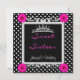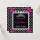 Convites Doce 16 16º Black White spot Flor rosa Tiara