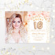 Doce 16 convite de aniversário com sua foto. Possui um confete dourado, um número de balão e rosas rosa-pinceladas. Doce 16 design floral clássico com brilho faux. Perfeito para uma elegante festa de 16 dias.