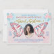 Estes convites de festas de aniversários 16 doces lindamente únicos transformam sua filha em uma linda borboleta. O design bonito tem um olhar de conto de fadas antigo em tons brancos de rosa, azul e ouro. A foto da sua filha preenche o centro das asas da borboleta. O design é feito em aquarela com detalhes falsos (impressos) de brilho e ornamentos florais. A tipografia "Doce Dezesseis" tem um aspecto brilhante em ouro. Use as modelos fáceis para adicionar todos os detalhes da sua festa. DICA: Se precisar adicionar mais informações, você também pode personalizar / personalizar ainda mais para editar a parte de trás. Todas as fontes e tamanhos de texto também podem ser ajustados.