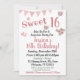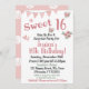 Convite de aniversário de 16 anos Sweet, flores cor-de-rosa