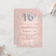 Um convite moderno, na moda e glamouroso para uma festa de aniversário Doce 16, 16. Um fundo rosa de gradiente dourado com rosa dourado e falsa gota prata. O nome é escrito com um moderno e escuro, rosa dourado, escrito com letra de estilo manuscrito. Personalize e adicione os detalhes da sua festa. O número 16 é escrito com uma fonte no estilo do balão prateado, script.