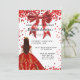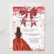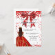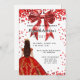 Um convite moderno, na moda e glamouroso para uma doce festa de aniversário 16, 16. Um fundo branco com brilhos, um vestido vermelho e um arco vermelho. O nome é escrito com um moderno estilo escrito à mão. Personalize e adicione os detalhes da sua festa.